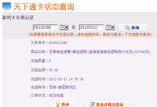 昨天买了100元的天下通充值卡,误充到兽团里了,今天在兽团商城账户里怎么也查询不到,点 和积分怎么都是零,我的天下通充值时提示已经充值成功 百游也是的 你既然现在没有团购活动 怎么不关闭团购充值通道啊