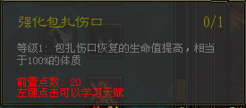 技能 60秒冷却时间 每2秒增加956血持续10秒,天赋加血是使用包扎伤口回复生命值提高,相当于体质的100%