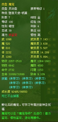 看看吧,你就是你们出的防御宝宝,堕落天使 钢翼,你们看清楚了,这上面显示的是灵动的啊,进化的时候,只长灵属或灵资,这问题提了都一个多月了,在BUG里也提了,怎么就得不到解决呢,你们商城里的宝宝蛋还想不想卖了啊!