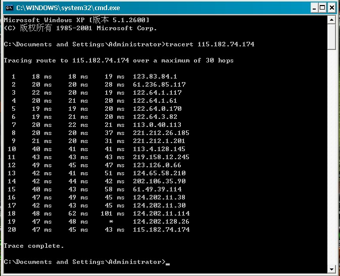 然后输入“cmd”执行“tracert 115.182.74.174“回车~