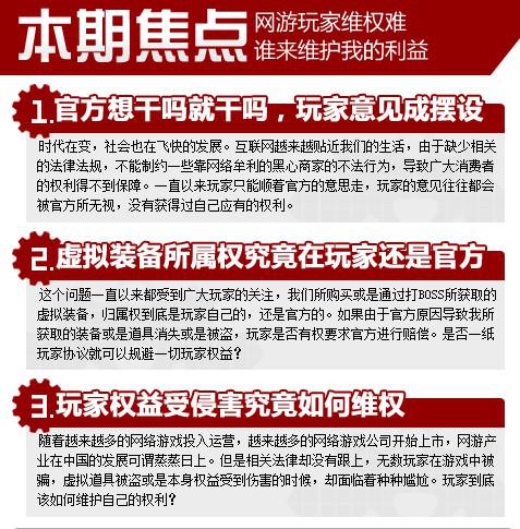 面对现在网游的现状, 我觉得每个大的网络公司都有责任,共同维护网游世界的清澈,让消费玩家明白消费,消费得开心。游戏里的不健康设置是在毒害这个国家的****,动摇这个民族的脊梁。君子爱财取之有道,执意金钱至上而不顾及消费者的利益无异于自掘坟墓。事实证明杀鸡取卵必然自事其果。因为这违背了可持续发展的原则,我们是草根,我们的声音真的很渺小,但是岂能因为声音弱小而不呐喊?828"中国网游消费者维权 事件!天下贰禁言门事件 !永恒之塔维权门事件 !都是值得纪念的一天,因为就在这天中国人打响了抗争网游霸Q的第一枪。意义之重大不亚于辛亥革命,影响之久远必将载入史册。  