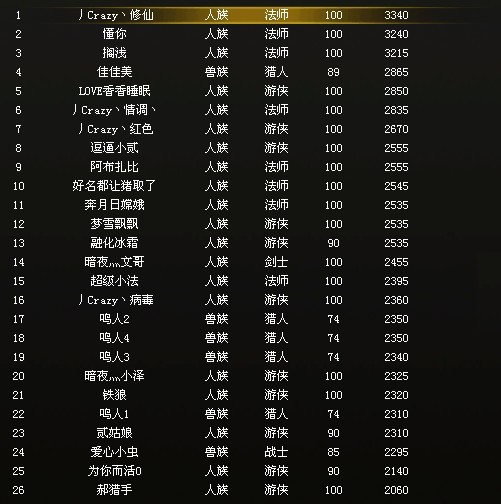 我们区的。。一条线。还惨些。90以下。前五十。。。上榜的兽族只有两人。。。