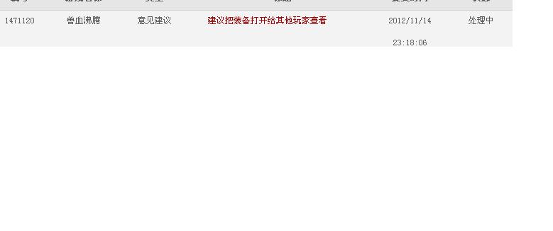 建议把装备打开给其他玩家查看,玩过很多游戏装备都能查看这样才能对比自己的不足,还能防止像上次14全减装备的变态物品隐藏,大家来顶下!@!