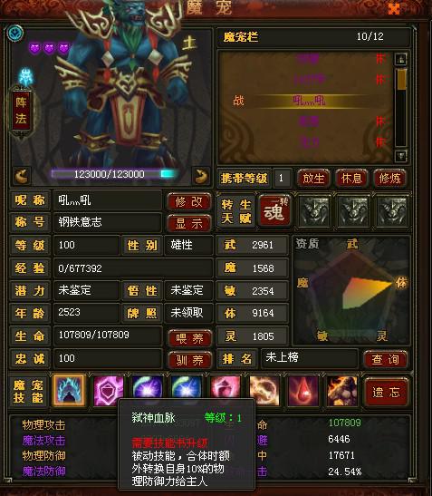 楼主自己练的吧!兽团的成品是20多万血5万多防御的,各种属性都逆天的!很明显你的BB是狂狮而不是神狮,神狮的技能是弑神血脉!而不是强韧血脉!牛头人酋长 发表于 2012-12-10 23:52:00 haha.jpg(65.12 K)2012/12/11 15:40:13haha1.jpg(62.11 K)2012/12/11 15:40:13