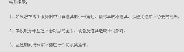合并服务器的两个服务器内,同帐号下每个服务器都有角色的话,会删除低级角色。