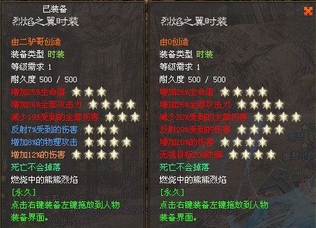 每用一次随机给1-4星,4星的时候属性有概率变色。最后强调一点烈焰时装千万不要去买时装精致改造石,那个石头是给恶魔五,混乱,六翼用的,用来增加属性,烈焰时装用不了那个石头。