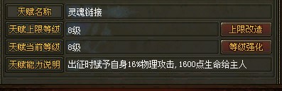 亲爱的玩家你好:宠物天赋灵魂连接中,天赋能力说明有误,正确的是附于宠物自身X%的属性,出征后X点生命加成给主人