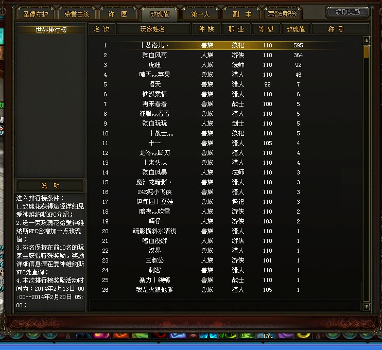 情人节活动玫瑰值排行榜上榜了怎么领不了奖励