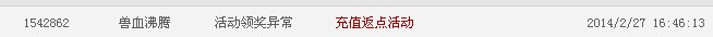 什么都没有啊 帐号上也没有点券 大礼包都点了没有东西 也提交了问题不给回复 也打了电话说在陆续发放中 我那区都有返了 比我充值多的都返了 我小号也给返了 大号就不给返 怎么回事啊