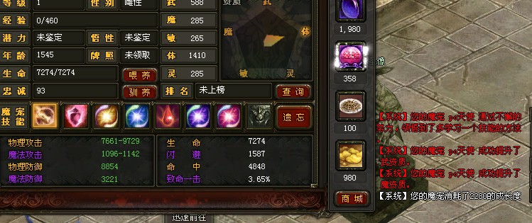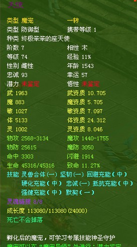 这个宝宝老是出错,用乞灵宝珠开过2次洞了转生还是少技能,幸亏现在乞灵宝珠不值钱,不然你们非得赔我损失。昨天进化宝宝 竟然还给我开洞,开洞后技能还出来了一个,还剩下一个你看看这是昨天的进化时候的图片。