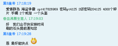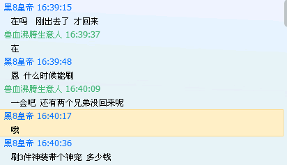 以上是 黑8找人刷 东西的 聊天记录 结果没谈妥 东西 都被人刷了 如果柏油 能给他回复数据 那我们以后集体找黑客刷东西 方正 东西没了 也能找回来