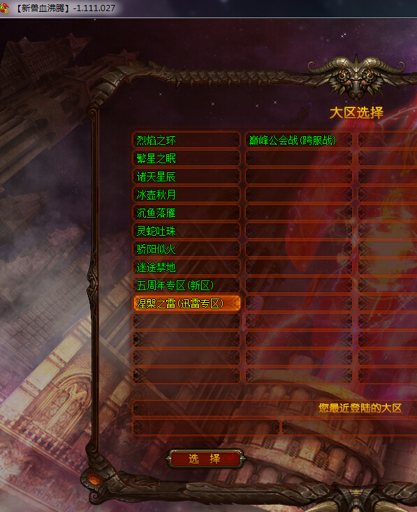 如图 已更新至027 为什么选择大区界面还是这个样子 而且右面那个蓝色经典的我就可以登陆进去游戏 这边就不行- - 想找黄金龙骑兰帕德 求助啊~~