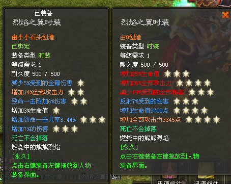之前你们说烈焰不能转移属性,现在你说这话(转移烈焰属性)这不是废话么,自打嘴巴啊烈焰正常是前3条红色的,改造不会降低颜色的,之前你们说烈焰时装的属性是不能转移的,改造也不会降低颜色(前三条是红色),那么楼主的烈焰时装现在降低了颜色等级,版主,你给我解释一下,我笨,到底是时装的显示错误还是时装的属性被转移走,还是时装改造可以降低颜色等级?你想清楚再回答,别再*