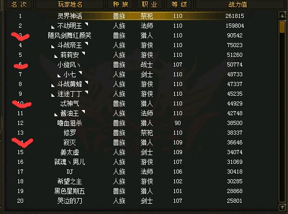 新区兽族战力榜前二十只有八个人,前三十12个人,其中前二十只有四个人在,其中一个不是本人,一个号卖给人族,一个不怎么上线,一个上线就劫劫镖(人族前二十全都每天在线玩)。。。另外看了一下,20到30的四个人,一个副本号,一个不玩了,一个排28,一个排30。。。我也是醉的不省人事了。。。天天膜拜排第一,战力超了第二一倍的霸主,搞得我们连弱族都没法评啊。。。