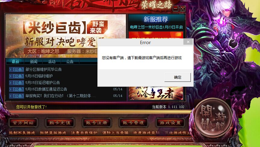 点开客户端显示“没有客户端,请下载最新客户端进行游戏”有图。