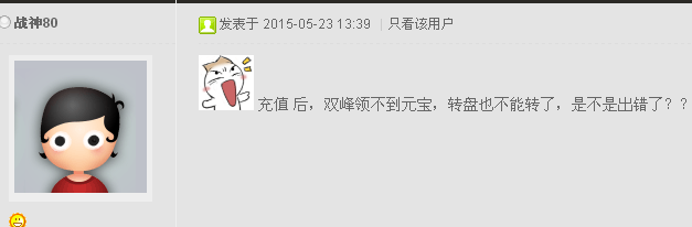 充值 后,双峰领不到元宝,转盘也不能转了,是不是出错了??????