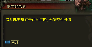 博学的老者那有个神器之魂任务 是斗魂达到2阶 就可完成任务!为什么我斗魂4阶了 显示完成但是领取的时候无法交付任务!