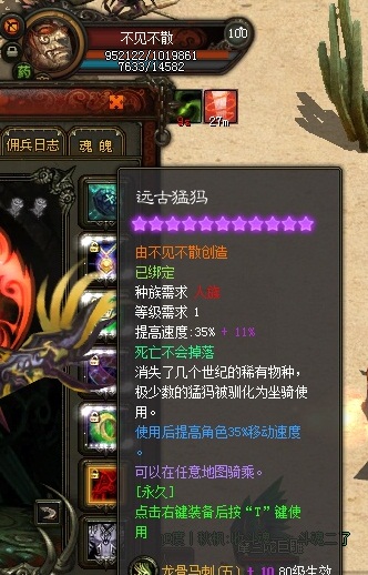 斑斑,我装备在身上的紫鳞年兽坐骑种族分类没有帮我改啊,以前是兽族的,转到人族还是兽族的,现在把坐骑卸到背包就骑不上去了
