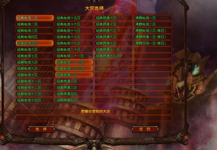 现在所有大区都是已经整合到新兽血沸腾中了,这些大区都是不存在的,童鞋尝试把游戏卸载之后更换盘符重新安装一下试试。