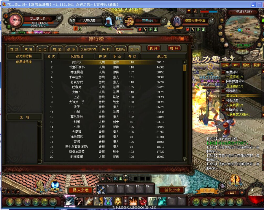 众神之怒—上古神兵 昨晚月底战力更新,弱族更新,人族刷弱族。如图这是战力更新前的