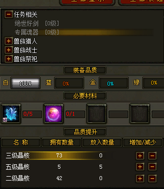 没看到任务相关4个字吗???那是做任务的..要做魂器点下面的,兽族战士---辅助里边有