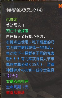 童鞋,这个巧克力有几率开出其他东西的,坐骑也不是没有用啊,如果童鞋的第一只坐骑累了还可以换第二只啊