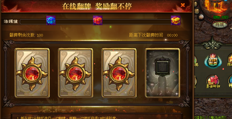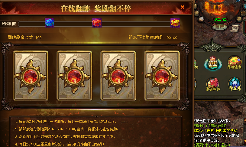 什么提示都没有,就是显示下次翻牌时间一直都是00:00,神石转了至少100.一看排行榜都没变,也没有礼包。