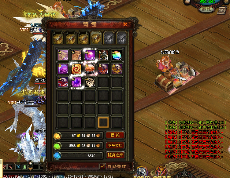 神之攻击强化石*20、 提示背包不足 我还有一个背包有一半地方没有放东西