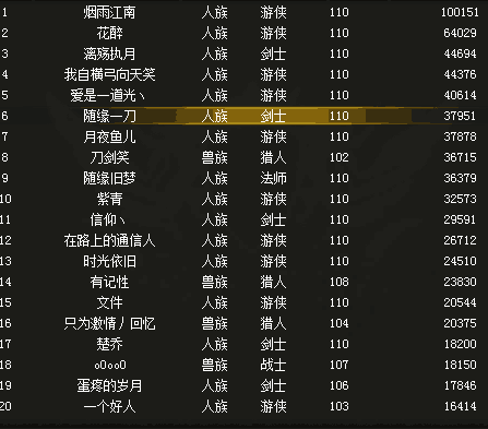 赶紧合区把,在不合区人都跑光了,就这中情况兽族想升110最快的一个人也得20天