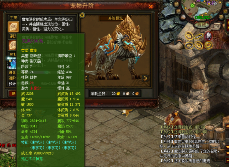 中间进化的时候,绝大部分都是说成功提升武资质,消耗xxx成长,但是成长消耗了,资质一点都没提示。一开始没注意,后来试验了七八次发现基本除了技能栏正常开,剩下都是只消耗成长但是就不加资质,十次顶多一两次可能加,不管是普通进化还是高级进化都是这样。