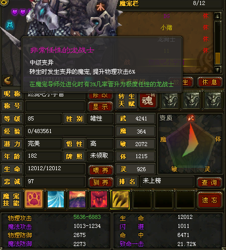 一只JP 龙战士 楼主这只 只能算一般 85级 没过7500 攻的 都只能算一般