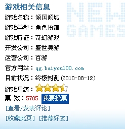 《倾国倾城》终极封测将于8月12日开启!近日,官方特举办“为《倾国倾城》投票赢终极封测激活码”活动,只需喜爱《倾国倾城》的朋友们轻点鼠标,投上您宝贵的一票,即有机会获得我们送出的终极封测激活码,提前畅享纯美国战网游。 为《倾国倾城》加油,我要投票