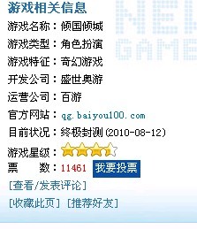 3、完成以上步骤后,您已经成功为《倾国倾城》投上一票。我们对您致以万分的感谢! 如有任何问题,欢迎拨打客服电话:010-59934000。《倾国倾城》运营团队