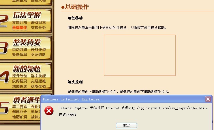 在新手教程这里,只要点左边的任何一栏就会跳出这个对话框,确定之后介绍区没文字也没图片(刚更新的IE浏览器)