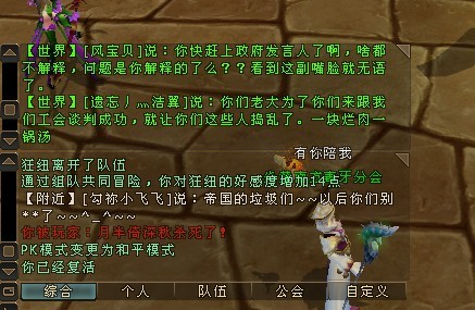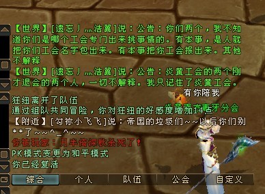 他们会就整一个**组成的十几个人杀我们2个` 因为另个兄弟等级底全程都在帮我们找他们的人。因为急了 所以在交易上诬陷我们是哪个会的。居然还大胆的骂他们诬陷的那个会。。。