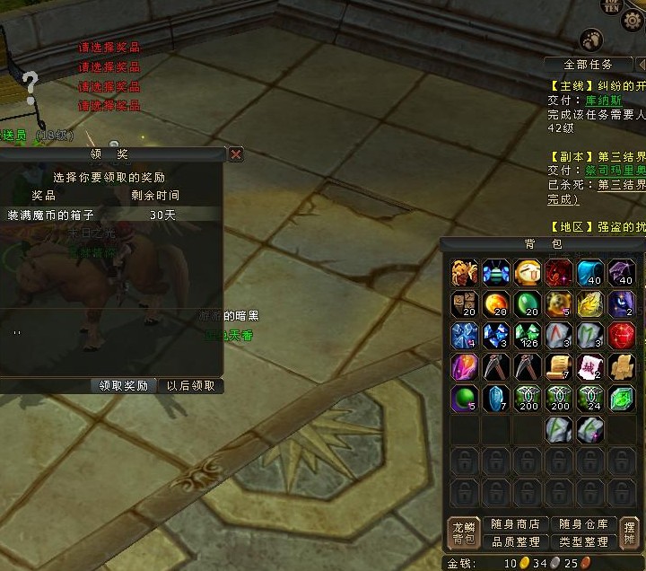 背包里有位置 也选择了领取 但就是提示请选择奖品
