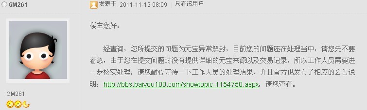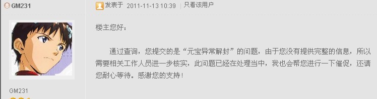 大家请看图片。前面2副图片。已经可以证明。11月15号全部解封的帐.号元宝已经无异常。下面回复也是这样。