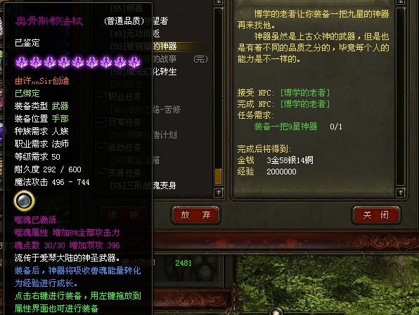 板主说得也不对~送的神器也可以完成任务~不能完成是因为神器是已鉴定状态~你把送的神器重置后还原成没鉴定的~系统一样算你完成任务