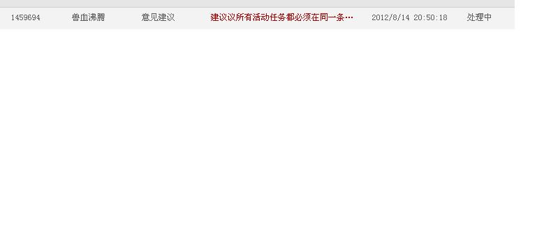 建议所有活动任务都必须在同一条线进行 特别是种族对立的活动、、这样才是兽血沸腾。。。提倡种族对立。。。。或者直接取消3条线。。。跟老兽血一样。。就开一条线