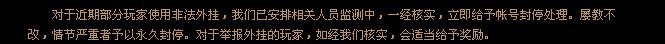 我举报玩家*一个多月。一点处理结果也没有。请问版主这就是官方的效率?还好意思开个帖来说举报*?举报有用嘛? 整天就那句:官方会严厉查处的,我 去。请问我举报的那个玩家的号查处没?拜托