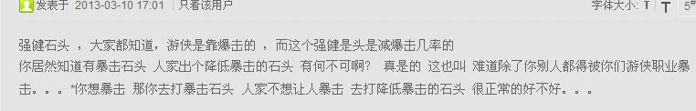 问问版主,这些问题到底存在还是不存在, 斗魂4变身有增加爆击伤害的用处,老区的火焰驭龙者称号有增加爆击伤害的用处,游侠的天赋有增加爆击伤害的用处,前提是不能加血! 游侠的职业技能也有个增加爆击伤害的技能! 现在的游侠打不出爆击了,这一系列的用处还有什么用呢,都成了没有意义了, 这些你们官方都认为是理所应当! 那么再问问 ,面对地狱火那种忽视装备,忽视元素,忽视减伤的技能,站在玩家的角度,所谓的 装备 还有什么意义呢! 穿顶级装备也是那些伤害, 穿一身白色装备还是那些伤害! 就 装备 两个字而言,该怎么解释!!!!!!!!!