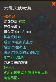 请版主告知,六翼时装更后的具体属性。出个新时装连属性都不知道,你让玩家怎么花钱买?