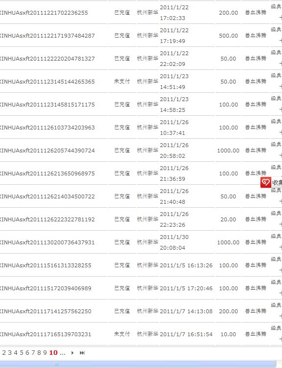 兽族的没有一个充值的,都没有花钱,就你那充值记录还好意思发出来,你们一个个亿万富翁就冲那么一点点钱啊,一次应该冲10WRMB,一次100、200的还好意思发出来