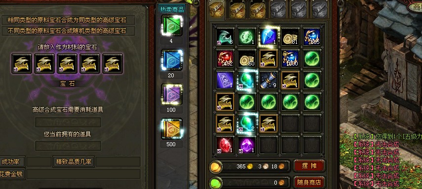 截图我看一眼,高级宝石合成界面加上右下角错误提示