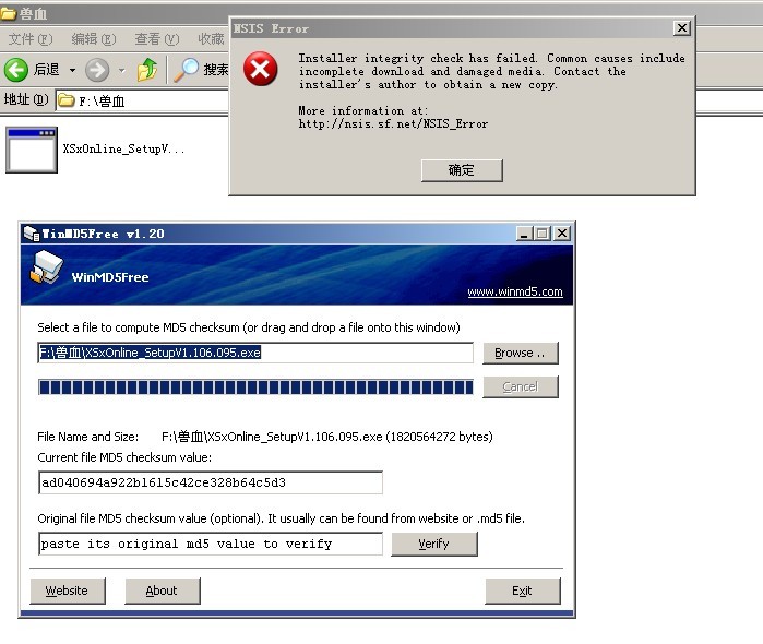 又重新下载一个,安装不了,下了那个MD5码也不行,求解咋回事啊