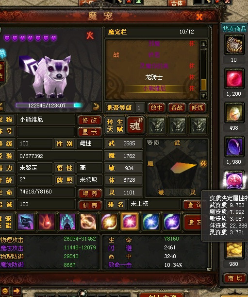 能发一张在聊天频道截的较看看吗?那个才看到计默契的魔宠真正属性。不过浣熊能练成这程度,赞一个!