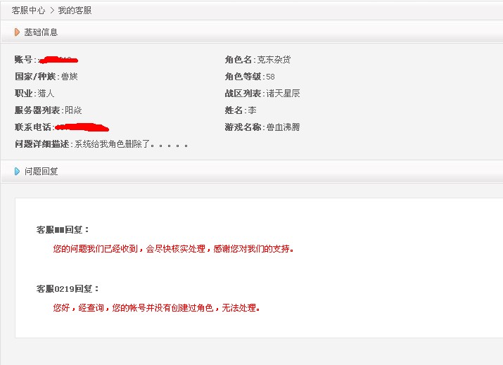我想起来一个 小号 58级 客服回复我说 我帐号没有创建过角色~~~~~~~~~~~··