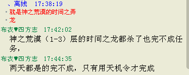 神之荒漠(1-3)层的时间之龙都杀了也完不成任务,今天早上又在2层神之荒漠把时间之龙杀了,任务还是未完成,我看只有用天机令完成,不费那劲了。