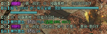本人,觉得这样的玩家 就是欠抽啊,于是问口水王在什么地方!?我们经典电信三区没什么兽兽还在玩了,他这么狂,我就想去杀了他让他知道吹牛的下场,让他欢乐的死在我的刀下