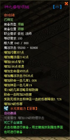 我的祭祀号 神装项链 昨天用元素冶炼符文 居然成了这样